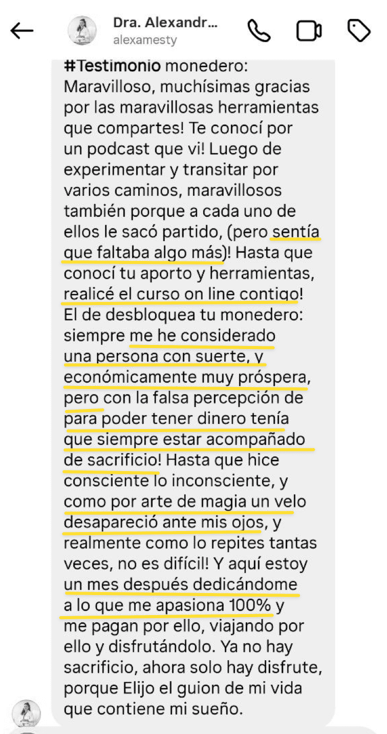 Una recomendación muy fuerte, no obligatoria, es que en paralelo del curso trabajes en terapia individual los temas que se vayan abriendo para que tu inconsciente vaya hasta el final. El resultado es mucho más profundo.